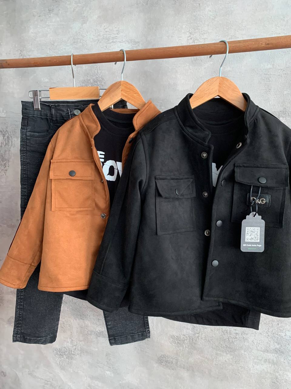 سایز ۱: پهنای تیشرت ۲۹، قد تیشرت ۳۸، پهنای کت ۳۵ قد کت ۳۶، قد شلوار ۵۴