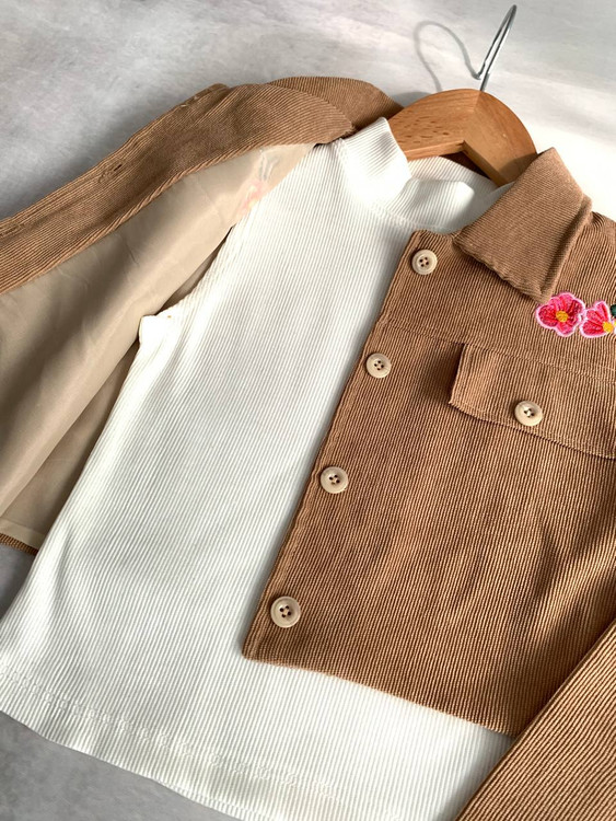 سایز ۲: پهنای سینه ۳۲، قد کت ۲۷، قد آستین ۳۴، قد دامن ۲۸
