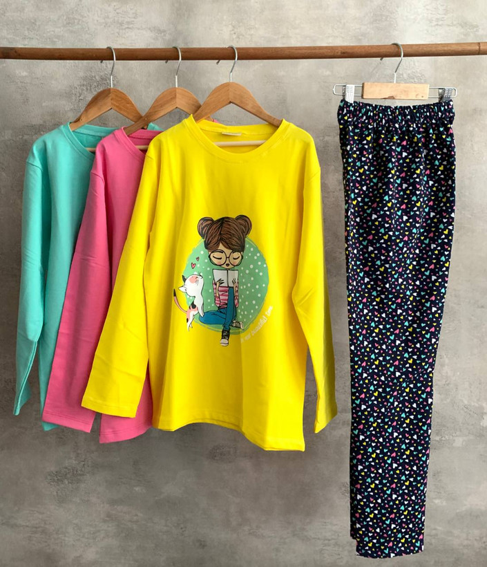 ست بلوز شلوار نخ پنبه دخترانه ( سایز بزرگ)